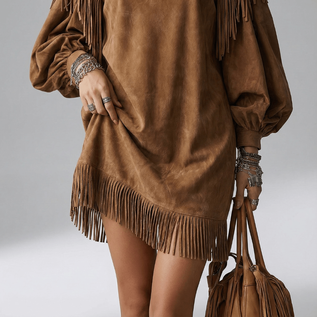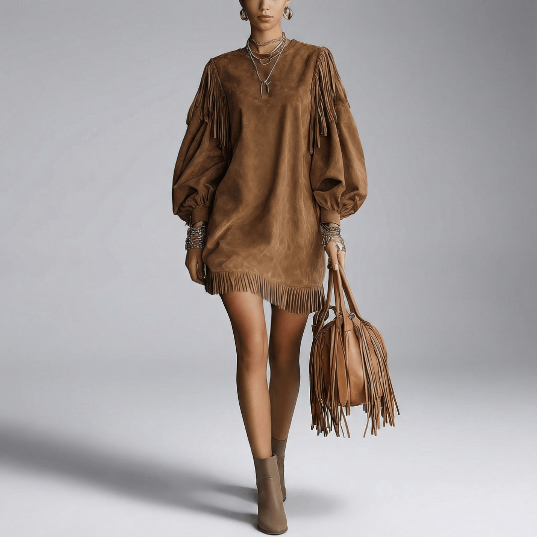 FRANSEN ÄRMEL LOCKERES MINI KLEID – Fließende Leichtigkeit für ein entspanntes, selbstbewusstes Auftreten